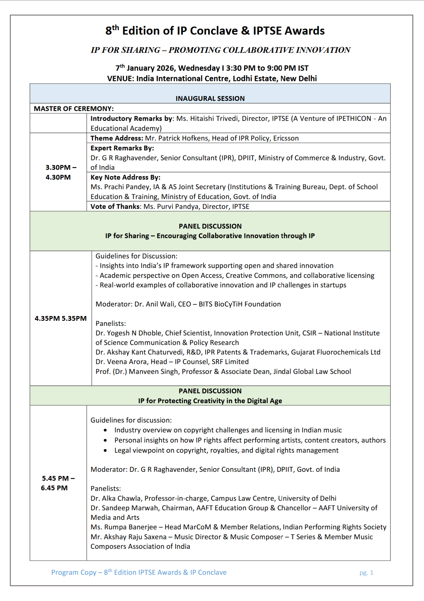 PROGRAM COPY 8TH EDITION IP CONCLAVE & IPTSE AWARDS
